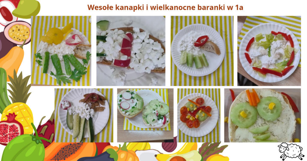 Dziś w klasie 1a zagościły wielkanocne baranki z serka grani oraz wesołe kanapki. Dzieci jak zwykle bawiły się wyśmienicie, przygotowując smaczne