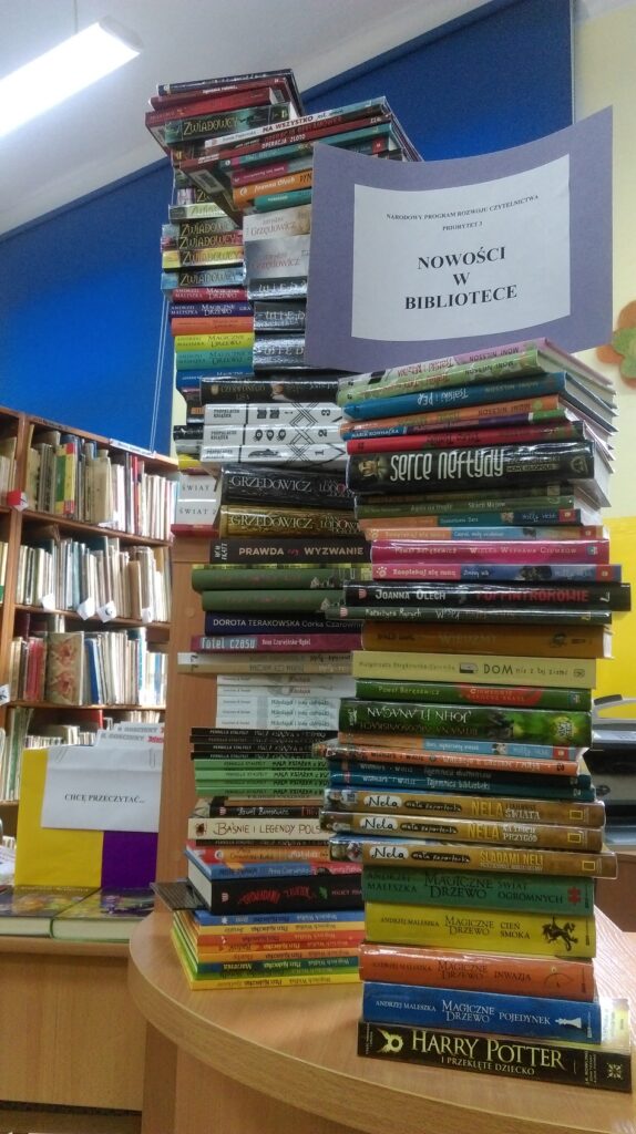 Biblioteka szkolna zaprasza dzieci, by wypożyczały książki do domu, korzystały